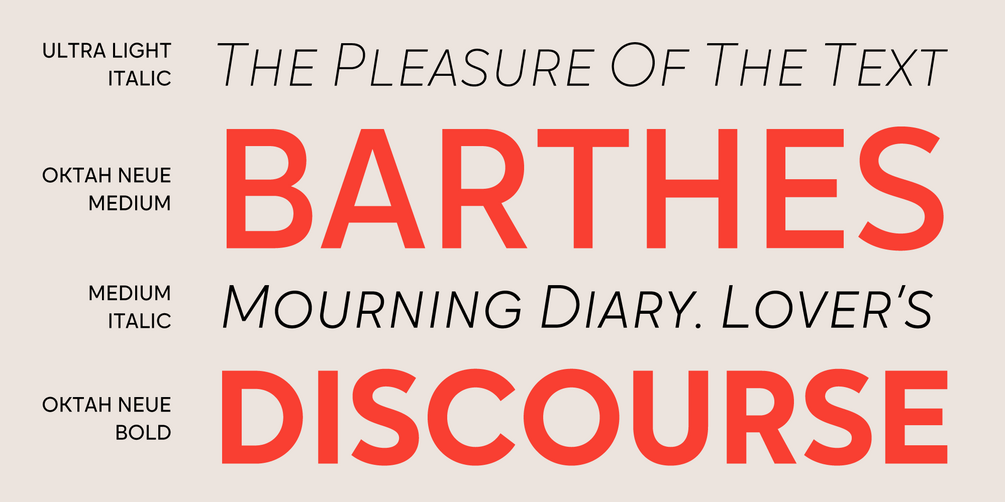 Oktah Neue inherits the best traits of Oktah—great legibility, simple geometric letters shapes, low contrast across all styles—but also introduces what Oktah fell short of: extensive language support and enhanced OpenType features.