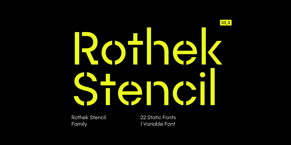 Rothek Stencil is a stencilled version of Rothek, a geometric sans serif released through Groteskly Yours. While Rothek Stencil preserves the original proportions and structure of the family, some optical compensations were made to accommodate the stencilled version. Rothek Stencil comes in 22 styles or as one variable font. With over 1000 characters on board, it supports more than 200 languages, including most Latin-based languages, Extended Cyrillic, Vietnamese, and many more.